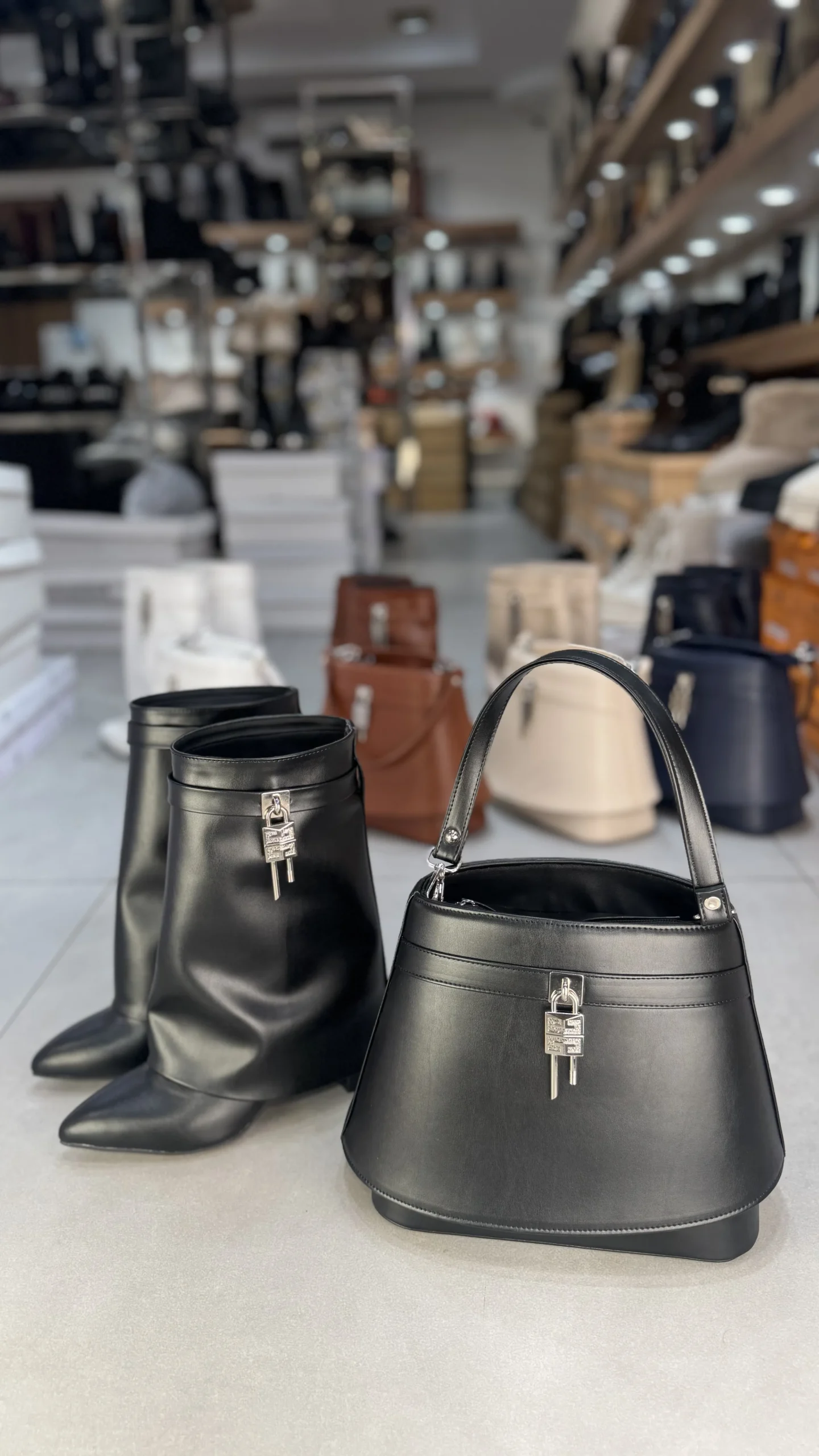 متریال کیف وکفش یکی است ارتفا22 سانت دهنه 20سانت کف 25 سانت بند کوتاه وبلند