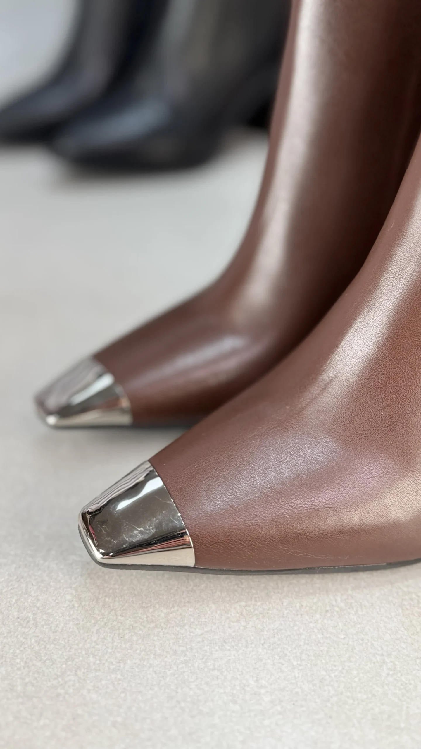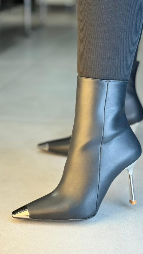 685 - نيم بوت پنجه طلا فلزجلو زيپ 685