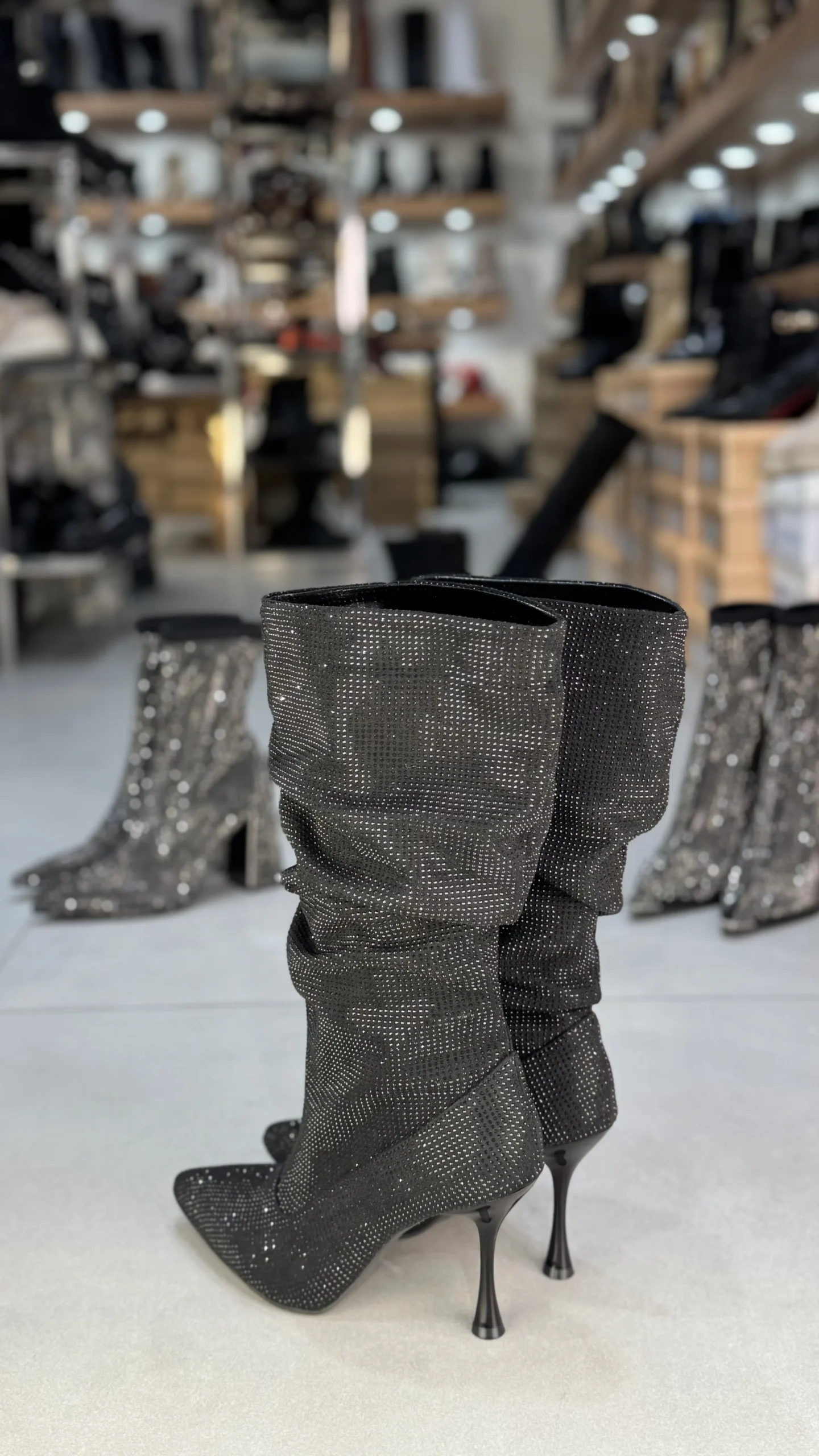 پاشنه 10 سانت  قالب استاندارد  رویه فول نگین    قد سانت بوت 30 سانت