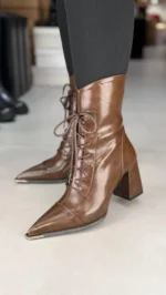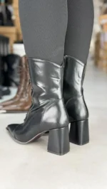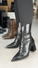 پاشنه 8 سانت قالب استاندارد 15 سانت قد بوت بغل زیپ بند تزینی پنجه استیل رویه بیاله دستدوز